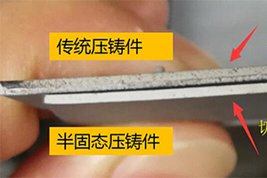 更好的致密性:以牌號AZ91D為例,原材料密度一般為1.80g/cm3 ,經過熔化壓鑄成型后,半固態壓鑄工件密度能保證在1.79g/cm3 以上,基本沒沙孔,而傳統壓鑄只有1.70g/cm3左右。